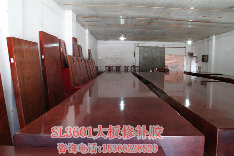 因?yàn)槟静纳厦嬗械目p隙較小,所以要選用滲透力好的膠來(lái)修補(bǔ)它,但是現(xiàn)在有很多大板加工廠用的是502類似的水性膠,這種膠雖然固化時(shí)間短,但是耐老化情況不好,對(duì)于一顆成長(zhǎng)了上百年歷史的原木來(lái)說(shuō)要體現(xiàn)它的價(jià)值當(dāng)然需要每一件都用好的材料來(lái)輔助它加工成為精品、藝術(shù)品,所以強(qiáng)烈給大家推薦SL3601透明裂縫膠這款膠顏色是完全透明的可以根據(jù)木材的顏色添加不同顏色的色粉;流動(dòng)性非常好,特別適合細(xì)小裂縫的修補(bǔ)和灌注修補(bǔ);