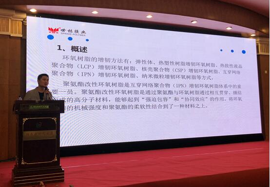 世林膠業(yè)劉工在環(huán)氧應(yīng)用技術(shù)學(xué)術(shù)交流會上進(jìn)行《聚氨酯改性環(huán)氧樹脂對環(huán)氧樹脂性能影響的研究》的演講。