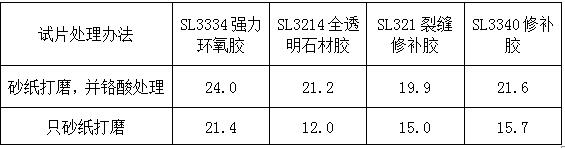 我們用幾款世林的環(huán)氧類型膠粘劑,做了鉻酸處理和不處理的試片在室溫固化24小時(shí)膠接剪切強(qiáng)度對(duì)比,數(shù)據(jù)如下