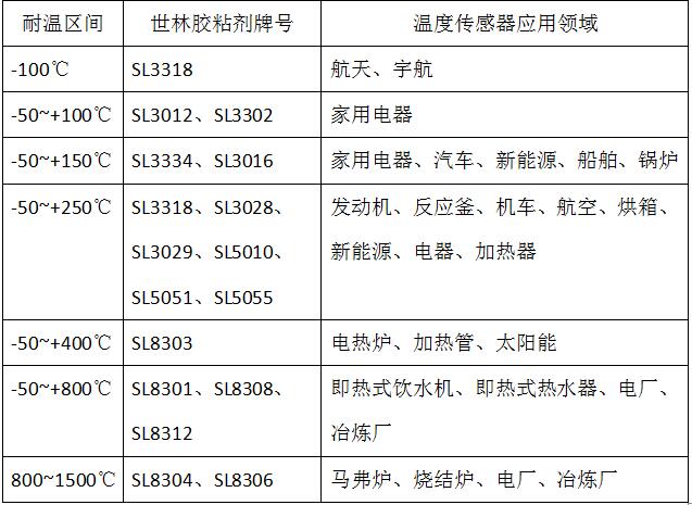 膠粘劑的性能高低對傳感器的影響較大,使用性能穩(wěn)定,耐老化好的膠粘劑為傳感器能長期穩(wěn)定的工作提供了保障!所以除了上述表格可以參考之外,您應(yīng)該和我們世林的工程師溝通到具體的應(yīng)用要求,此外被粘接的具體材質(zhì)對傳感器專用膠的選擇也會有所不同。