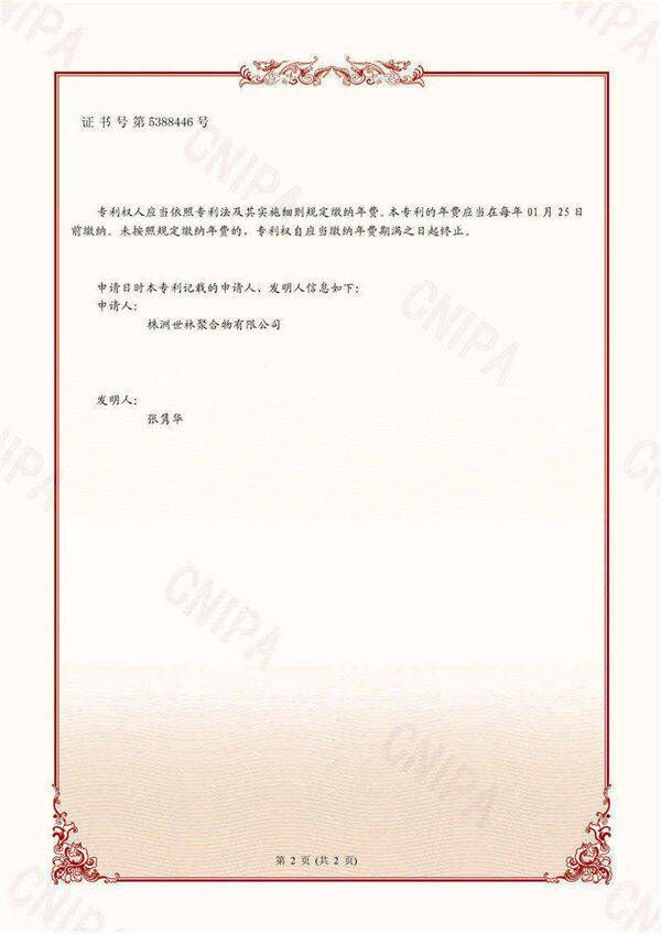近日,株洲世林聚合物有限公司自主研發(fā)并申報的《一種耐高溫?zé)o機膠及其制備方法》(專利號ZL 2021 1 0095861.2 )獲得國家知識產(chǎn)權(quán)局頒發(fā)的發(fā)明專利證書!