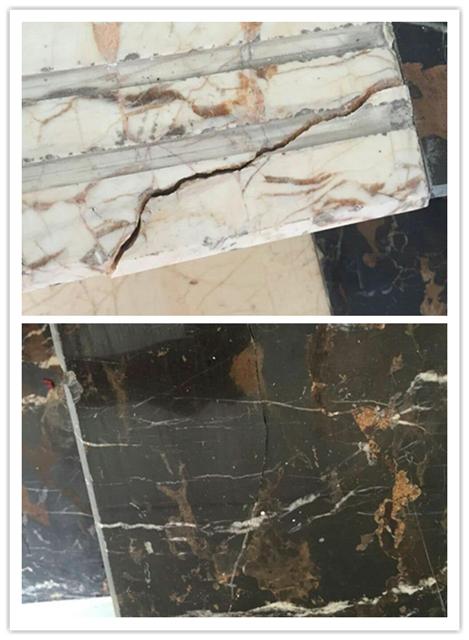 根據(jù)網(wǎng)上提供的號碼18169335841,聯(lián)系到銷售工程師謝工,告知斷裂面大需要先無水清理干凈斷面,再調(diào)和石粉補強固定住后再灌膠到裂縫內(nèi),等固化后再打磨,裂縫小則直接用膠灌注表面等膠慢慢滲入。于是訂購一組按說明操作,哎!還別說,效果還真的好。不僅大理石斷裂處全部修補好了,連之前一些小的裂縫也都填補齊了,打磨后還非常牢固。 SL3218透明裂縫修補膠除了用在大理石裂縫修補外還可以用于其他玻璃、木材、陶瓷等的裂縫及斷裂面修補。